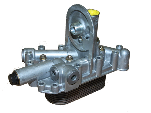機(jī)油冷卻器的作用是冷卻潤滑油,保持機(jī)油油溫在正常工作范圍之內(nèi)。在大功率的強(qiáng)化發(fā)動機(jī)上,由于熱負(fù)荷大,必須配置機(jī)油冷卻器。發(fā)動機(jī)工作時,機(jī)油冷卻器的作用是降低機(jī)油溫度,保持潤滑油一定的粘度,保證潤滑。機(jī)油冷卻器布置在潤滑系循環(huán)油路。